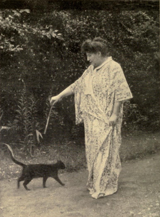 We advance slowly, full of emotion and thoughtful, as at the threshold of a temple. Some one has seen us, undoubtedly, as the Master appears at the door of the drawing-room and descends the steps, a big black Newfoundland bounding by his side.