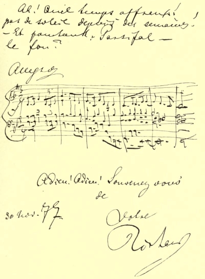EXTRACT FROM ONE OF WAGNER'S LETTERS TO MADAME GAUTIER, SHOWING PART OF SCORE OF THE LAST ACT OF "PARSIFAL."