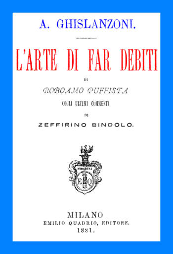 Ho risoluto, come risolvo, di tramandare ai posteri un breve opuscolo che si intitola lʼArte di far Debiti, già ideato a Parigi nei miei primi ozii di Clichy, abbozzato a Milano durante la mia involontaria permanenza in un piccolo appartamento della via di SantʼAntonio, e ridotto a purgata[3] lezione in questi ultimi giorni di domicilio coatto impostomi dalla malattia.