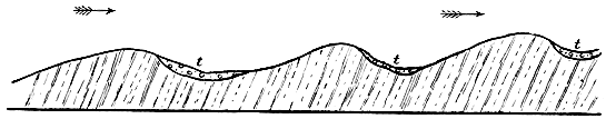 [C] The geological reader hardly requires to be reminded that many of the minor streams would have their courses determined, or greatly modified, by the geological structure of the ground. Thus, such streams often flow along the “strike” and other “lines of weakness,” and similar causes, doubtless, influenced the main rivers during the gradual excavation of their valleys.