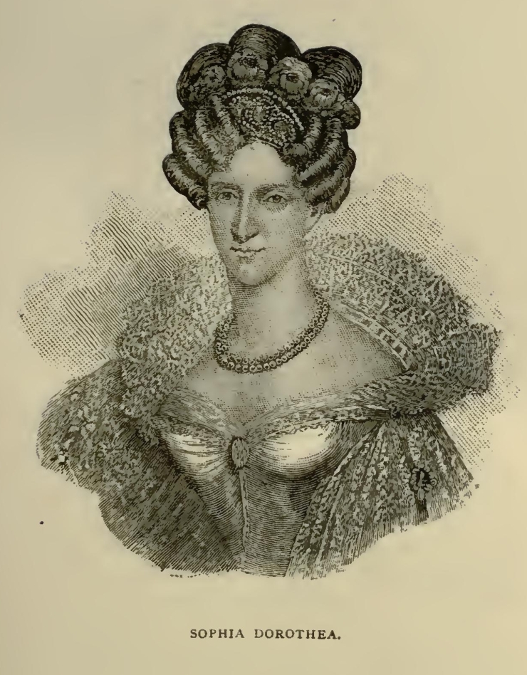 A.D. 1666. Her first child, the subject of this history, was born on the fifteenth of September, 1666. She was named Sophia Dorothea, which means, Wisdom, the gift of God, and she needed an unusual amount of this endowment, when she became a woman, to support her under the miserable trials a cruel husband laid upon her. But we must not tell about that yet. As a child, Sophia Dorothea was a source of delight to her fond parents, and filled 020their home with sunshine and happiness. Alas! if they could have looked into the future, sooner would they have laid their little darling in the grave than see her live to drag out a weary existence to its bitter end. Perhaps it is well that they could not, for they had three other children that died in infancy; and consolation for their loss was always to be found in the possession of their charming, interesting, constantly improving little Sophia Dorothea.