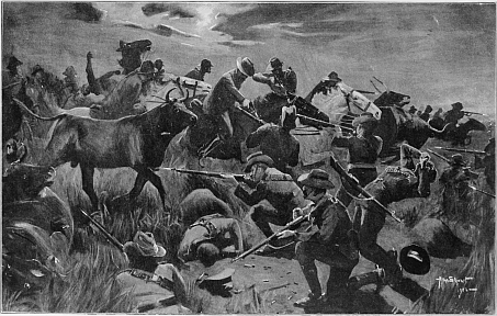 “A serious question is raised by my failure to-day. I do not now consider that I am strong enough to relieve Ladysmith. Colenso is a fortress which, if not captured by a rush, could, I think, only be taken by a siege. Within the eight miles from the point of attack there is no water, and in this weather that exhausts infantry. The place is fully entrenched. I do not think we saw either a gun or a Boer all day, but the fire brought to bear on us was very heavy. The infantry were willing enough to fight, but the intense heat absolutely exhausted them. I consider I ought to let Ladysmith go and to occupy a good position for the defence of South Natal, and so let time help us. But I feel I ought to consult you on such a step. Twenty thousand men, I consider, faced us to-day; both in arms and in position they had the advantage. They admit, indeed, that they suffered severely, but my men are dispirited because they have not seen a dead Boer. My losses have not been very heavy; much heavier, indeed, I could have made them, but the moment I failed to get on the run the result would have been the same. I was beaten. I now feel I cannot say that with my available force I can relieve Ladysmith, and I suggest that for me to occupy a defensive position and fight it out in a country better suited to our tactics is the best thing that I can do.[Pg 211]”