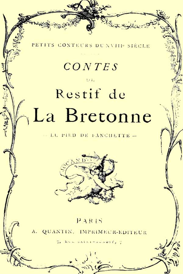 Le Pied de Fanchette fut le premier succès littéraire de Restif.—La Famille vertueuse et Lucile XXX ou le progrès de la vertu, précédemment publiés, n'avaient rapporté à leur auteur ni honneur ni profit. Dans la Revue de ses ouvrages [U-15], l'historien de Fanchette s'exprime ainsi à son sujet: «Ce petit roman qui eut beaucoup de succès est l'histoire de la jeune marchande de la rue Saint-Denis (Mme Lévêque) à laquelle il est dédié.—Il est inutile de rien dire de l'intrigue: elle est fort commune; mais ce qui la singularise, c'est que tous ces événements sont occasionnés par le joli pied de l'héroïne et ces événements sont très multipliés. Les trois premiers chapitres, qui sont une espèce de préface, ont été très goûtés. Cependant feu M. Fréron refusa de l'annoncer comme étant un peu libre. On l'a plusieurs fois contrefaite en province.»