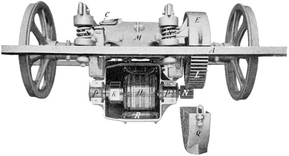 Of all the wonderful operations accomplished by the aid of electricity at the present time, none so completely mystifies the beholder as the action of the trolley car. The electric light, although incomprehensible to the average layman, does not excite his curiosity to the same extent. The glowing filament of an incandescent lamp or the dazzling carbon points of an arc light stimulate the inquisitive proclivities to some extent, but as the popular notion with respect to the nature of electricity is that it is some kind of fluid that can flow through wires and other things like water through a pipe, the conclusion arrived at is that the current, in its passage through the filament or the carbon points, generates a sufficient amount of heat to raise the temperature of the material to the luminous point. The fact that energy is required to raise the temperature of the mass to the incandescent point is not taken into consideration by those not versed in technical matters, owing to the fact that, as nothing moves, it is not supposed that power can be expended. When a trolley car is seen coming down the street at a high rate of speed the effect upon the mind is very different. Here we see a vast amount of weight propelled at a high velocity, and yet the only source through which the power to accomplish this result is supplied is a small wire. The mystifying cause does not stop here, for if we look further into the matter we see that the energy has to pass from the trolley wire to the car through the very small contact between it and the trolley wheel. After contemplating these facts, it appears remarkable that the energy that can creep through this diminutive passage can by any means be made to develop the force necessary to propel a car with a heavy load up a steep grade. An electrical engineer, if asked to explain the action, would say that the force of magnetic attraction was made use of to accomplish the result, but this explanation would fail to throw any light upon the subject. In what follows, it is proposed to explain the matter in a simple manner, and then it will be seen that what appears to be an incomprehensible mystery, when not understood, is, in fact, no mystery at all.