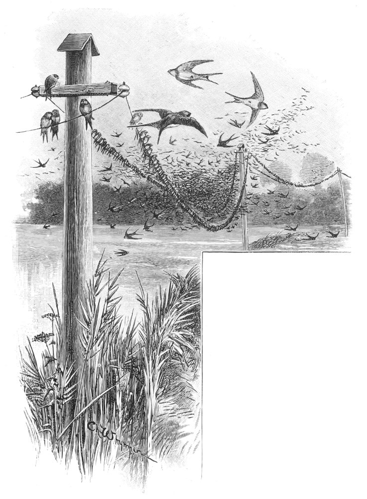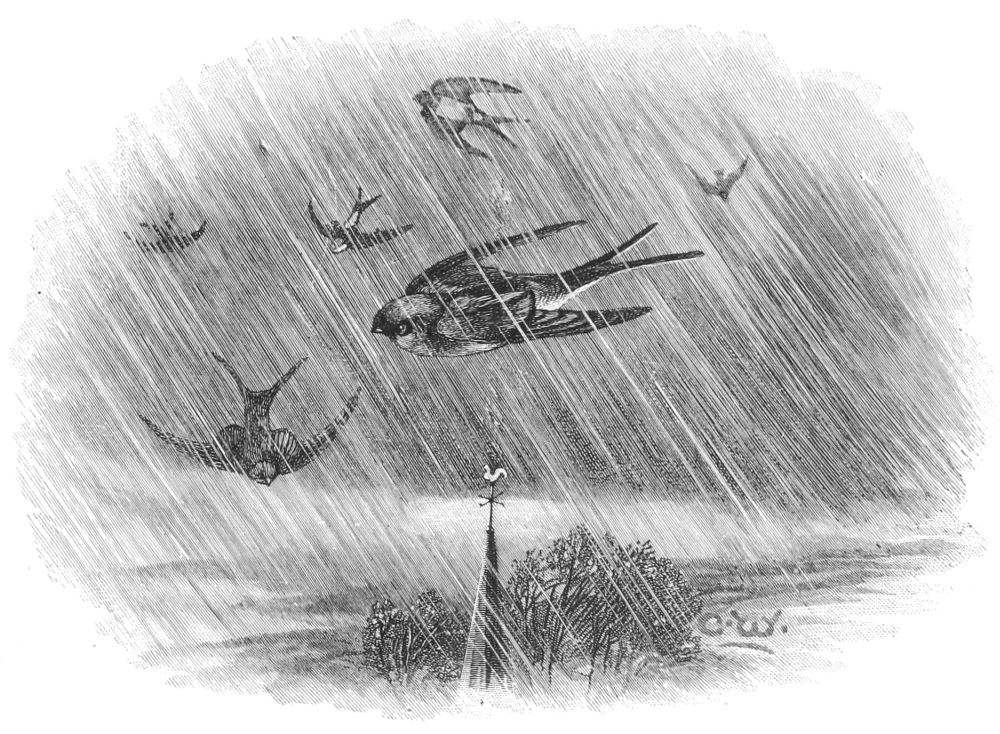 And they come in strange company. Sometimes the wild swan, quite an island for the little birds, flies winnowing the air beside them; sometimes a flight of hawks, but with their minds too full of their journey to think of harming their small fellow-voyagers; always with the sound of a multitude about them, and the murmuring of innumerable wings. Pitch dark the night, but somewhere or another is a leader, and they follow, wild duck and swallow, sea-fowl and dove, broad-winged geese and tiny gold-crest wrens, an instinct-driven mob that, in spite of all perils of storm and of distance, keeps its course, with dogged courage, and steers straight for the land that is to be its summer home. Lighthouses have become our best observatories for these annual transits, and the descriptions that are given of the mobbing of the great sea-lanterns by the hurrying flights of strangely assorted birds, are so curious as to be scarcely credible. What they suppose it to be, this bright revolving light in the dark waste,{21} we cannot of course tell; but they have learned by experience that it means that land is very near, and so they all swerve in their course to pass through its rays. And those who keep the lighthouses tell us of the streams of birds that pass, flashing white for an instant in the glare of the lamp and then disappearing, and of still larger companies that fly overhead and out of sight, filling the night-air with the sound of rushing wings and the clamour of different voices, “feeling for each other in the dark,” as Bunyan says, “with words.”