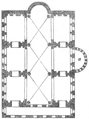 [56] Literatur: Vergl. Lübke, Vorschule zur Gesch. der Kirchenbaukunst des Mittelalters, 3. Aufl., Dortmund 1852; Springer, die Baukunst des christl. Mittelalters mit 300 Fig., Bonn 1854.