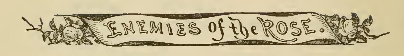 The worst enemies of the rose belong to the insect world. Of these there are four, which, in this part of the country, cause far more mischief than all the rest combined. The first is the aphis, or green fly; the second is the rose-slug, or larva of the saw-fly; the third is the leaf-hopper, sometimes called the thrip; and the fourth is the small beetle, popularly called the rose-bug. The first three are vulnerable, and can be got rid of by using the right means. The slug is a small, green, semi-transparent grub, which appears on the leaves of the rose about the middle of June, eats away their vital part, and leaves nothing but a brown skeleton, till at length the whole bush looks as if burned. The aphis clings to the ends of young shoots, and sucks out their sap. It is prolific beyond belief, and a single one will soon increase to thousands. Both are quickly killed by a solution of whale-oil soap, or a strong decoction of tobacco, which should be applied with a syringe in the morning or evening, as the application of any liquid to the leaves of a plant under the hot sun is always injurious. The same remedy will kill the leaf-hopper, which, being much more agile than the others, is best assailed on a cold day, when its activity is to some degree chilled out of it. Both sides of the leaves should be syringed, and the plant thoroughly saturated with the soap or tobacco-water.