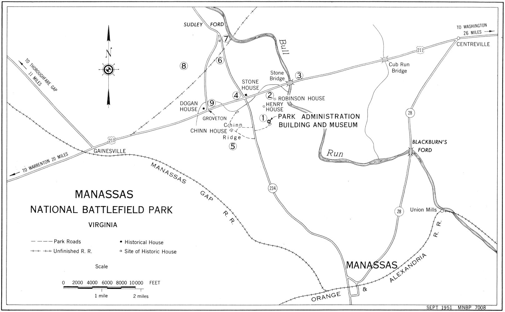 Manassas National Battlefield Park preserves the scene of two of the famous battles of the Civil War. The first shall be ever memorable as the opening engagement of that great conflict, while the second, fought approximately a year later, paved the way for Lee’s first invasion of the North. In each instance Confederate arms won signal success and dangerously threatened the National Capital.