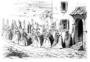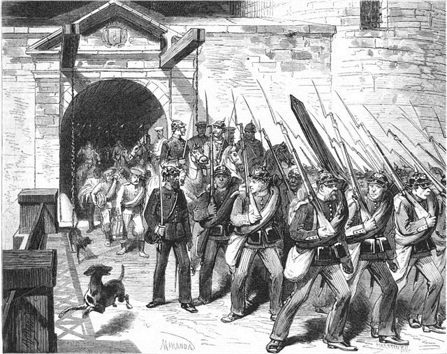 Tous les habitants sont accourus. Grimpés sur les talus, sur les remparts, ils saluent le bataillon, tandis qu'une foule nombreuse l'escorte à la citadelle.
