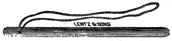 The method of employing this ligature is as follows. A solid cord of india-rubber, about one-tenth of an inch in diameter, may be threaded to a probe having at one end a rounded opening, or eye, through which the ligature is passed. The probe enters the fistula from the external to the internal opening, and passes out through the anus. To facilitate the passage of the cord, the rubber should be put on the stretch. After the ligature is passed, a soft metallic ring is slipped over the two ends of the cord; the cord is then tightly stretched and the ring slipped up as high as possible and clamped.