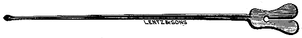 If the internal opening be any distance up the bowel, Allingham's instrument (Fig. 46) facilitates the passage of the ligature. In using it, remember that it is intended to draw the cord from the bowel out of the external orifice, and not vice versa. This instrument has been modified and improved by Helmuth, of New York. (Fig. 47.)