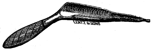 In cases of fissure the speculum ani is seldom required by those accustomed to making rectal examinations. In the majority of instances the possession of the tactus eruditus—education of the sense of touch—will enable the surgeon to form a correct diagnosis without the aid of this instrument, and thus save the patient much pain. If a speculum should be required, the instrument of Aloe (Fig. 5) or of Sims (Fig. 6) may be employed.