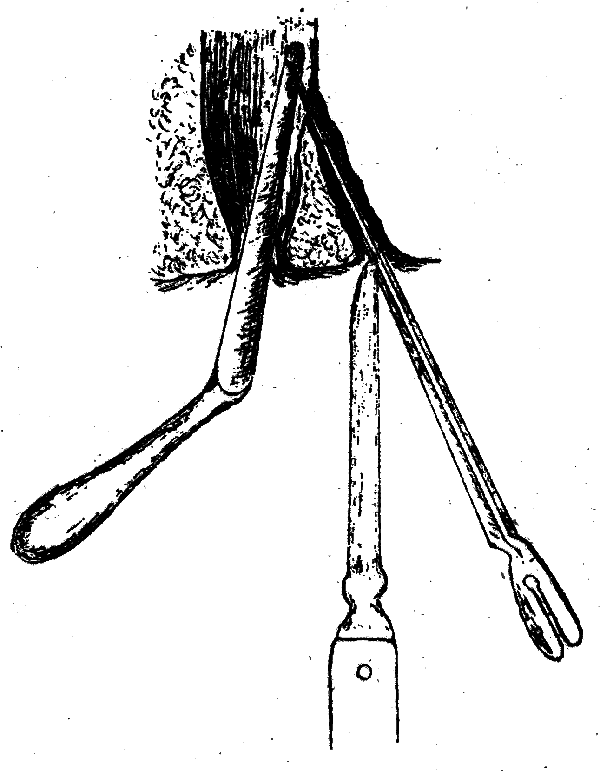 Fig. 36—Operation for Fistula with Gorget (Bernard and Huette).
