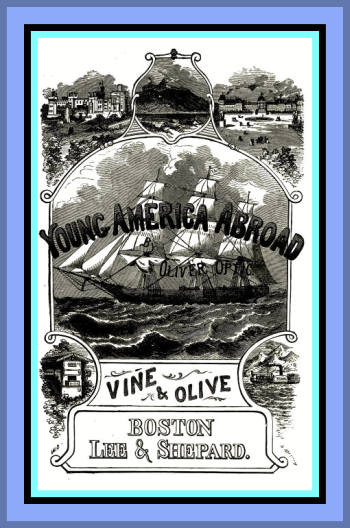 Vine and Olive, the fifth volume of the second series of “Young America Abroad,” contains the history of the Academy Squadron during the cruise along the shores of Spain and Portugal, and the travels of the students in the peninsula. As in the preceding volumes, the professor of geography and history discourses on these subjects to the pupils, conveying to them a great deal of useful information concerning the countries they visit. The surgeon of the ship is a sort of encyclopædia of travel; and, while he is on shore with a couple of the juvenile officers, he enlightens them by his talk on a great variety of topics; and the description of “sights” is given in these conversations, or in the “waits” between the speeches. In addition to the cities of the peninsula on the Atlantic and the Mediterranean, the young travellers cross the country from Barcelona to Lisbon, visiting on the way Saragossa, Burgos, the Escurial, Madrid, Toledo, Aranjuez, Badajos, and Elvas. In another excursion by land, they start from Malaga, and take in Granada and the Alhambra, Cordova, Seville, and Cadiz. Besides the ports mentioned, the party vessels visit Valencia, Alicante,—from which they make an excursion to Elche to see its palms—Carthagena, and Gibraltar.