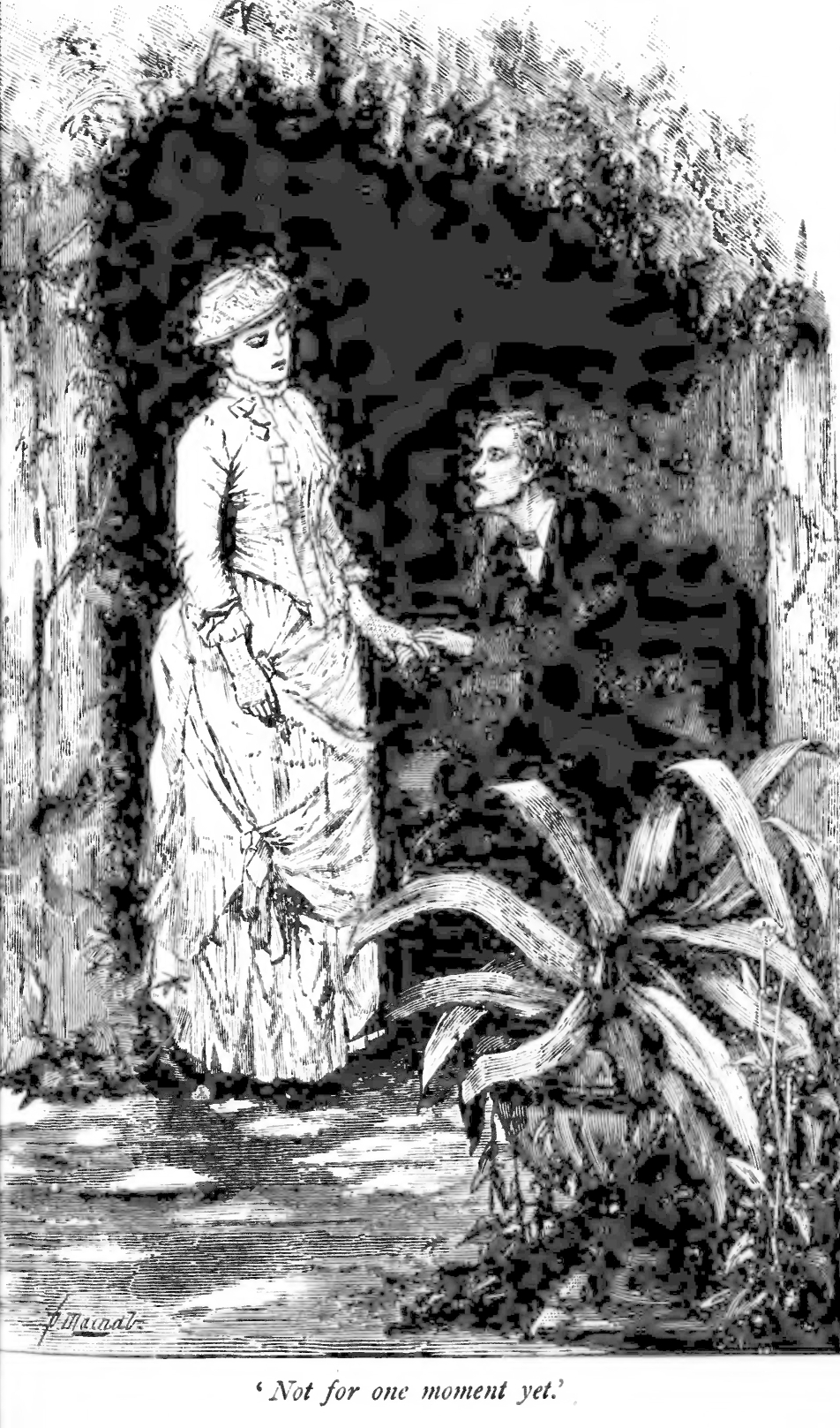 He tried to kiss her as he spoke, but Minna, half doubtful what she ought to do, with swimming brain and tearful eyes, held him off mechanically by withdrawing herself timidly a little, and gave him her hand instead with strange coldness, much to his evident surprise and disappointment.