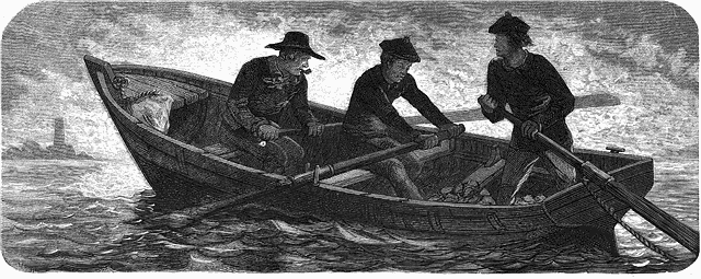 PÊCHE A LA DRAGUE, A L'AVIRON, RIVIÈRE DU TRIEUX.