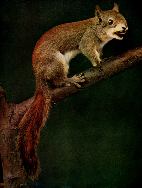 The Squirrel is a variable animal in point of color, the tint of its fur changing with the country it inhabits. It is easily tamed, and is a favorite domestic pet. It is said, however, that one should beware of purchasing so-called tame Squirrels, as they are often drugged with strychnine, under whose influence they will permit themselves to be handled. In some cases the incisor teeth are drawn, to prevent them from biting. It is sad that such cruel tricks of the vendors exist and cannot be prevented.