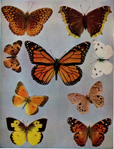 Mounted, a drawer full of butterflies is more beautiful than a collection of precious gems, for, although many of our native butterflies are exceedingly beautiful, they are not to be compared with the average of those from India, China, and South America. In these dead, heavy black alternates with brilliant crimson, yellow, and gold, livid greens and blues, and deep, rich garnet and purple, sometimes in broad bands and blotches of glowing color, and in others in wonderfully delicate and intricate traceries and patterns. The texture of the wings is also infinitely more beautiful than anything we have here, some of them having a heavy rich gloss that exceeds that on the finest fabric that human skill can produce, while others have the deep changing lustre of gems or liquids.