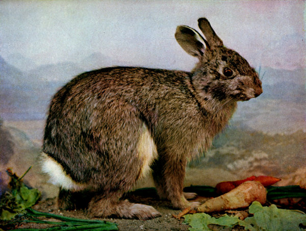 COTTONTAIL and Molly Cottontail are the names commonly applied to this easily recognized species of the Rabbit family, everywhere prevalent in the middle states, continuing to be numerous in spite of the fact that it is constantly hunted in season for food. Its flesh is more delicate than that of the larger species, and is much valued. In winter the city markets are well supplied with Cottontails, their increase being so large that they are always abundant, while in rural districts the small boys capture them in great numbers with dogs. We have known two hundred of these innocent creatures to be taken in one day on a single farm. If protected for but one season they would become as Rabbits are in Australia, a pest.