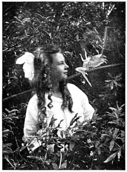 With regard to the photographs, the story is rather a long one and I have only gathered it by going very carefully. The children who were concerned are very shy and reserved indeed.... They are of a mechanic's family of Yorkshire, and the children are said to have played with fairies and elves in the woods near their village since babyhood. I will not attempt to narrate the story here, however—perhaps we[24] may meet for that—but when I at length obtained a view of the rather poor prints it so impressed me I begged for the actual negatives. These I submitted to two first-class photographic experts, one in London and one in Leeds. The first, who was unfamiliar with such matters, declared the plates to be perfectly genuine and unfaked, but inexplicable! The second, who did know something of the subject and had been instrumental in exposing several "psychic" fakes, was also entirely satisfied. Hence I proceeded.