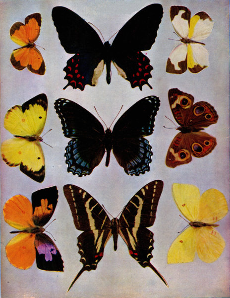 Perhaps the marvelous migration of Butterflies which occurred on Oct. 3, 1898, will be more interesting to us than those already mentioned because it happened so recently and in our own country, and perhaps, most of all, because the reason for flight is hazarded. The inhabitants of Wichita, Kansas, at 3:15 o'clock in the afternoon of that day were greeted with the sight of many Butterflies flying south. Gradually the number increased until business practically ceased, the inhabitants all turning out to view the brilliant spectacle. The stream of yellow and brown insects, with the accompanying purr and brilliant effects of fluttering wings flowed on until within a half an hour of sunset, and even after this, millions of stragglers hastened southward. But you are interested in the reason given? They say that our little friends were driven away from their customary haunts by the forest fires in Colorado. This is only one more supposition to add to the list already awaiting some enterprising student, who shall at last solve the mystery of these wonderful flights and fully acquaint us with all the other interesting facts which our little Butterflies are still keeping secret.
