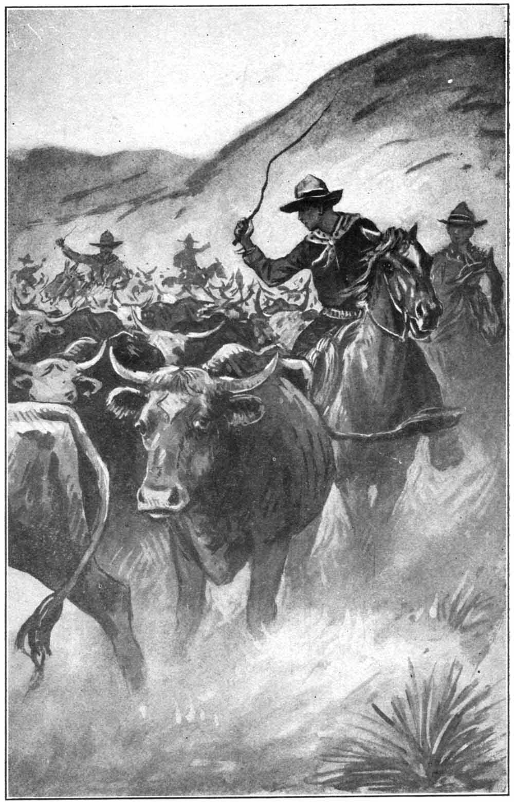 They were now bearing down upon the spot where the steer was acting so strangely. He circled around a small patch of timber and brush that was too dense for him to push through, every little while bellowing angrily, shaking his long horns, and giving every evidence of having been worked up to a pitch where he could not contain himself.