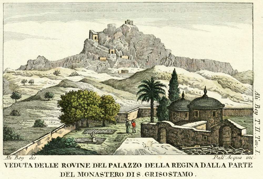 La città di Ktima, un tempo così rinomata, non è oggi che un ammasso di ruine, ove [261] non sonovi più di dugento famiglie turche, e venti greche. Il palazzo del vescovo colle sue pertinenze trovasi in separato quartiere; ma pare che il vescovo preferisca la dimora di una città interna, che mi si disse bastantemente grande e popolata di soli Greci.