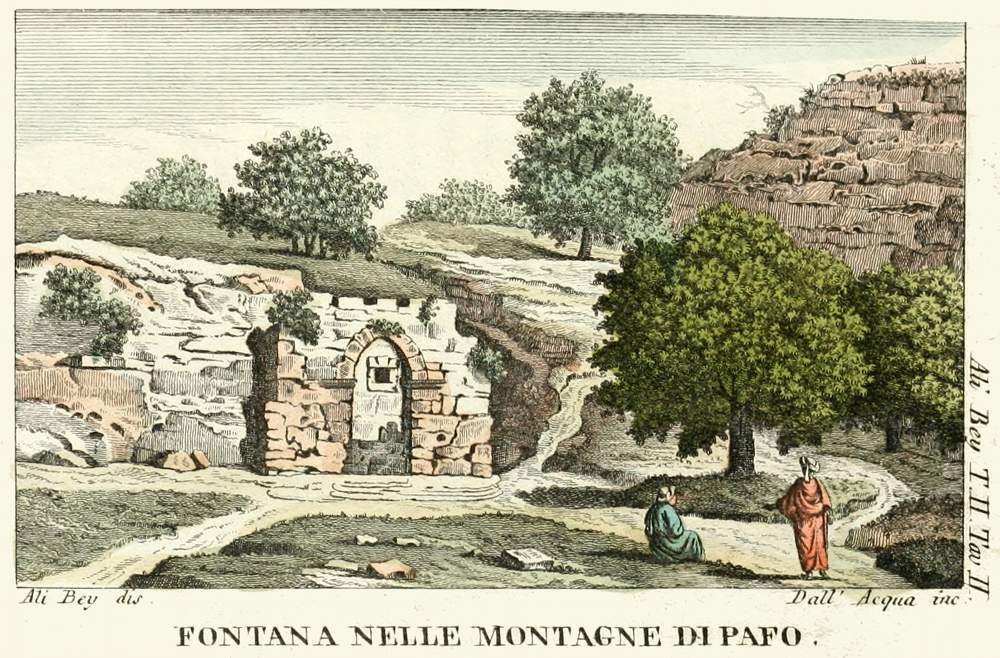 Dopo mezzogiorno lasciai le ruine per andare alla nuova Pafo, porto di mare distante mezza lega, dai Turchi e dalle carte nautiche detto Baffa, altra volta ragguardevole città, nella quale trovansi rottami di colonne di archi, ecc., e poche case abitabili sparse tra le ruine con alcuni giardini.