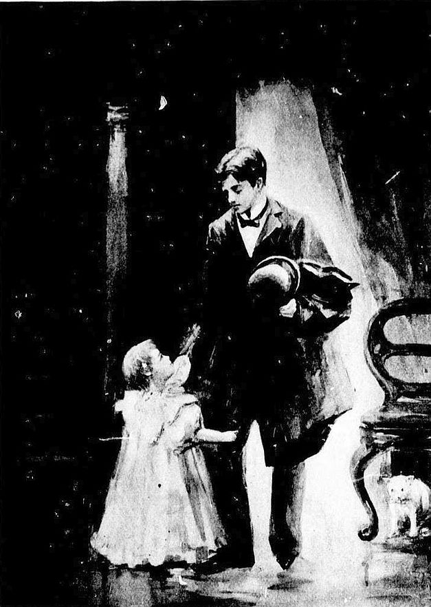 “Oh yes, dear boy,” said the child, trotting downstairs to fulfill her favorite’s behest. When the sound of her footsteps died away, there was subdued laughter, and some one said, “Who is that pretty child, Robertson?” Then the door banged, and there was silence.