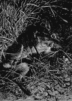 The defenseless hares and rabbits are bitterly persecuted by the weasel, which springs upon them, and with wonderful instinct knows exactly where to fasten its sharp teeth. The unfortunate hare may scamper away as fast as it can, but its enemy clings to its neck, and the poor little animal must soon fall, faint and dying, from loss of blood. The tragedy pictured in our engraving is acted over and over again by these two pretty inhabitants of woodland thickets, and the rabbit is always forced to yield to its little enemy.