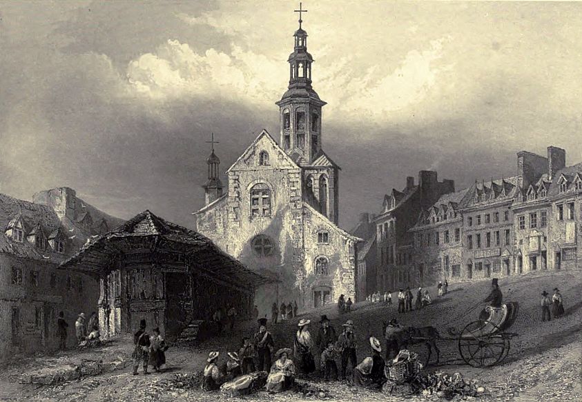 The market is held in an open space, 250 feet long, with a breadth in some places of about 165. A large building with stalls has been reared in the centre, though the chief business is still transacted on the open ground. It is held every day, but Saturday is the busiest. The crowds of carters, with their wives and families, bringing in the productions of the surrounding country, their brawlings and vociferations in bad French and broken English, form a scene of noise and confusion, amid which appear a few Indian squaws, and the gentlemen of the city and garrison going round to make purchases. Every kind of provision is abundant and cheap, except fish, which is less plentiful than might be expected from the situation. Among public places may also be mentioned the Grand Parade in front of the castle, surrounded by the most distinguished edifices; and also the Esplanade, a large level space along the interior wall, which is the chief theatre for military exercises.