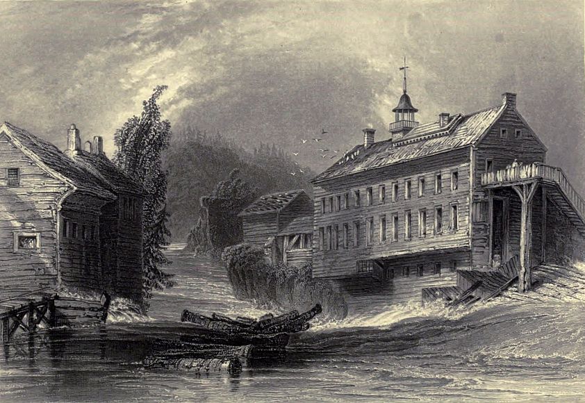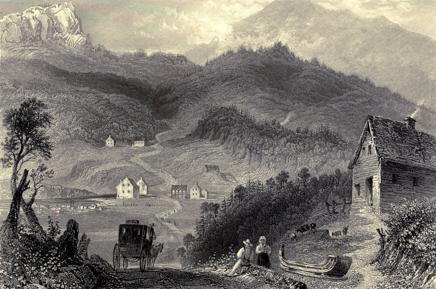 Crossing the St. Charles, and going eastward through the agreeable village of Beauport, we reach the Falls of Montmorency, one of the most picturesque objects in all America. They do not, indeed, pour down that immense flood of water which renders Niagara so wonderful; but the height is greater, being 240 feet, and the stream descends the whole of this vast steep in one white sheet of foam. It is received into a vast basin, whence arise clouds of vapour that display the most brilliant tints of the rainbow. M. Bouchette imagines that even Switzerland, though it contains much loftier falls, has none which descend in so unbroken a mass. He overlooks, we think, the Staubbach, whose stream, however, is less copious than that of Montmorency. In winter, when the falling waters congeal into icicles, these accumulate above each other, till they, on some occasions, swell to an amazing magnitude, and present a most curious spectacle. About fifty years ago General Haldimand, then governor of Canada, built a house close to the fall, and commanding a most advantageous view of it. This was afterwards occupied by the Duke of Kent, and is now the residence of Mr. Paterson, who has erected upon the river an extensive range of saw-mills.