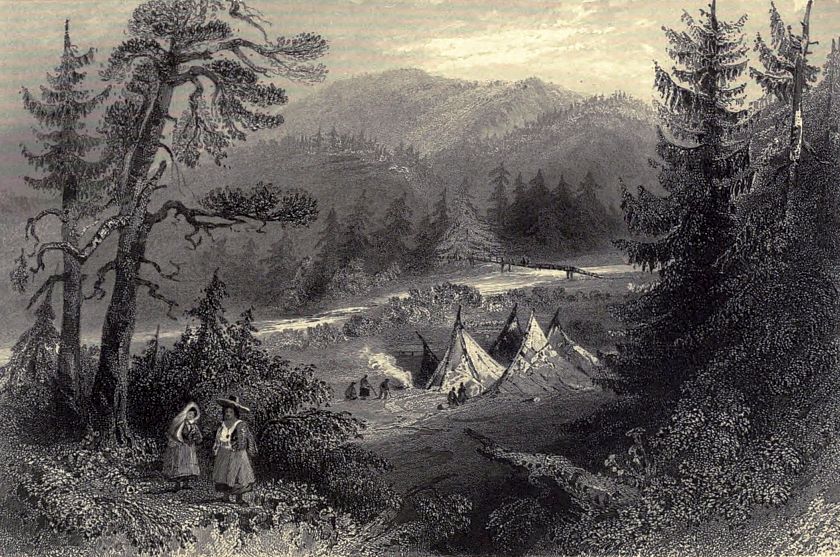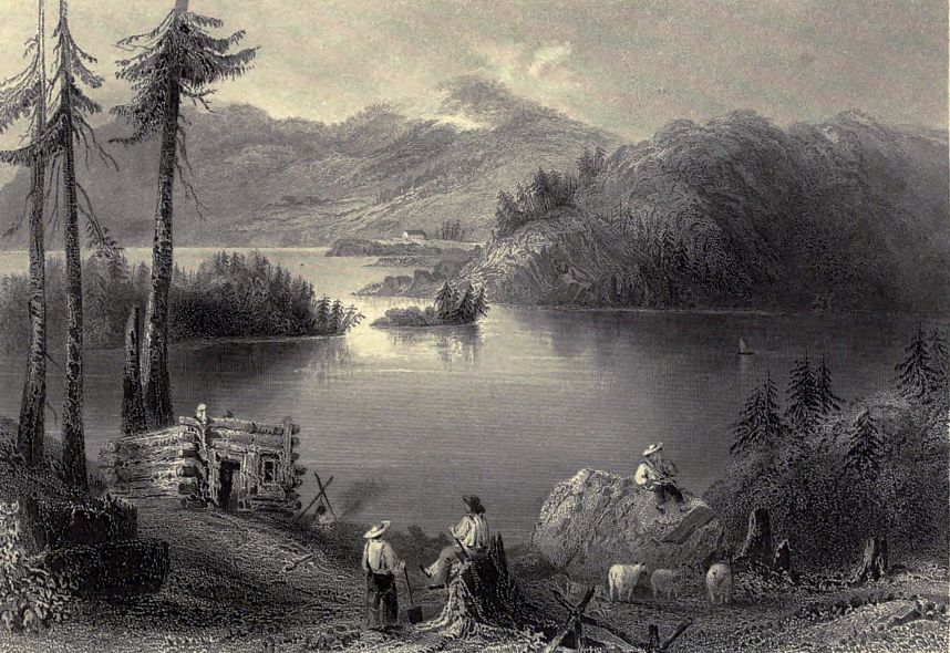 The cultivated country northward of Quebec does not extend far, being closely hemmed in by the range of mountains, and settlement being obstructed through the very imperfect titles by which alone the land can be conveyed. Immediately westward, in front of the fortification, are the Plains of Abraham, memorable as the scene whereon Quebec was gained by the gallant Wolfe, and whence only it can be successfully assailed. The summit, indeed, is 330 feet high, which does all but command the loftiest pinnacle on which Fort Diamond stands. As some security against this danger, four martello towers have been so placed as to range over the whole plain. Immediately to the north, a road leads along the heights to the village of St. Foix, and to the beautifully secluded dingle of Sillery, about four leagues in length and one in breadth, formerly the seat of a missionary settlement, which we shall have occasion again to mention. In the same direction from the suburb of St. Roch is the Huron village of Lorette, near the banks of the river St. Charles, which in this neighbourhood forms a beautiful cascade. Onward still, twelve miles from Quebec, is the lake of the same name, about four miles long and one broad. It is divided into two parts by projecting ledges, and the upper one especially is finely diversified by rocks, woods, bays, hills, and lofty mountains in the distance.