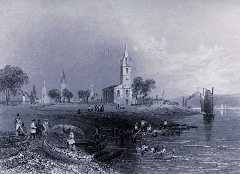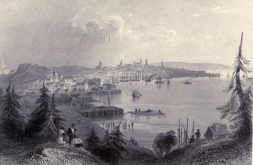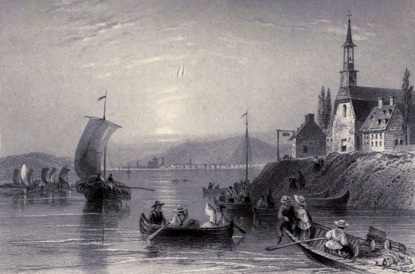 Quebec maintains a constant communication with Point Levi on the opposite shore, whence it derives a great part of its provisions. A steam ferry-boat plies every half hour, making the trip in about ten or fifteen minutes. The navigation also being very properly left free, the river is constantly covered with numerous canoes, generally hollowed out from the trunks of trees. The boatmen brave the most tempestuous weather; and, though often driven several leagues out of their course, are scarcely ever wrecked. Even in winter, when they must encounter blocks of ice, with which the channel is encumbered, they contrive with ropes and iron-pointed poles to raise their vessels upon the surface of the masses, and drag them along till they find open water on which to launch it. When this channel is frozen entirely over, the communication becomes still more easy. A line is marked with beacons placed by the Grand Voyer, over which hay, firewood, with other bulky articles, are transported abundantly and at reduced prices. This advantage occurs only occasionally; but every year the channel between the Isle of Orleans and the northern coast is frozen over, when the produce of that fertile spot, reserved for the occasion, finds a ready conveyance. Formerly, milk and vegetables were brought in a frozen state from distant quarters, but now these commodities are procured in abundance from the neighbourhood.