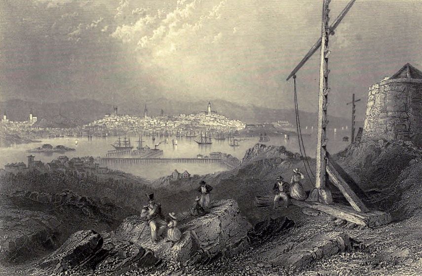 On the inland side of the fortress, stretching more than a mile into the interior, are the large suburbs of St. Roche and St. Johns. They are built regularly, but chiefly of wood, and with accommodations suited only to the lower ranks; though of late, indeed, they have been adorned with many stone houses of a superior class. There is also a smaller suburb, named St. Louis.