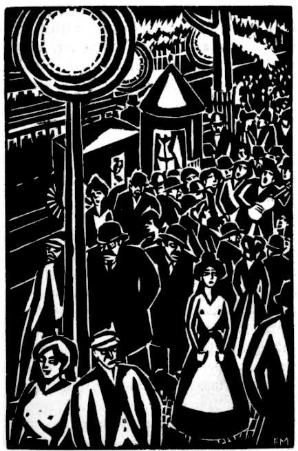 Es wurde zehn Uhr und die unglückselige Stimme der roten Geige schrie noch, bis ihr zu schreien verwehrt wurde. Sie verließen die Schar der Neugierigen, und da die junge Frau nicht schüchtern schien, bot er ihr ein Glas Bier an. Er hatte große Angst, daß sie nicht annehmen würde.