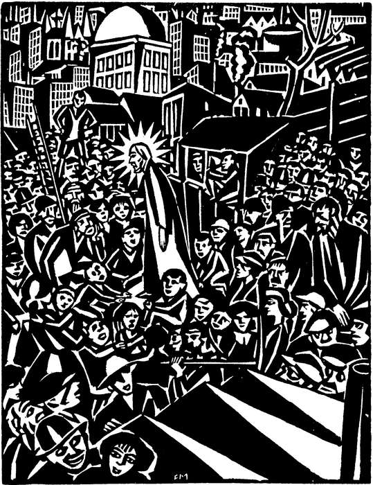Er hatte schon seit einiger Zeit davon gehört, wie dieser Fremdling zum Ärger aller Priester und Wucherer die Kleinen um sich scharte und sie mitriß mit seinem inwendig brennenden Wort; und alle glaubten ihm, wenn er prophezeite, daß sie glücklich sein würden und daß einst die Güte auf Erden herrschen würde.
