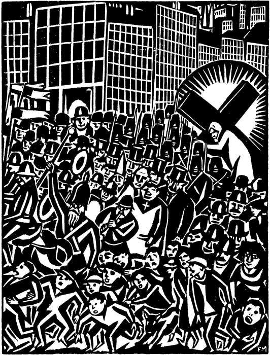 Die Schriftgelehrten, die Küster des Tempels, die Reichen, die Wechsler, die Leute an der Spritze, alle, die Jesus bei ihren Geschäftchen gestört hatte, alle, die einen Augenblick gezittert hatten, sie waren überall eifrig am Werk, tobten, daß es staubte, ließen Bier herumreichen und versprachen goldne Berge, wenn Jesus gekreuzigt würde. Und vor dem Sturm zog sich Pontius Pilatus ins Haus zurück, gereizt mit Kaiphas sich kibbelnd, der ihm mit aufgeregter Geschwätzigkeit folgte.