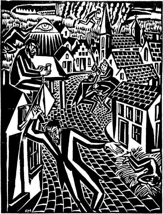 The Project Gutenberg EBook of Der Ewige Jude, by August Vermeylen This eBook is for the use of anyone anywhere in the United States and most other parts of the world at no cost and with almost no restrictions whatsoever. You may copy it, give it away or re-use it under the terms of the Project Gutenberg License included with this eBook or online at www.gutenberg.org. If you are not located in the United States, you'll have to check the laws of the country where you are located before using this ebook. Title: Der Ewige Jude Author: August Vermeylen Illustrator: Frans Masereel Translator: Anton Kippenberg Release Date: December 20, 2014 [EBook #47711] Language: German Character set encoding: ISO-8859-1 *** START OF THIS PROJECT GUTENBERG EBOOK DER EWIGE JUDE *** Produced by Jens Sadowski