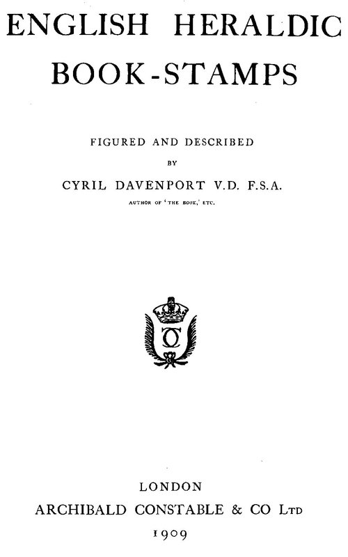 Two short papers have already been written about my present subject, and both of these are illustrated with drawings by myself. The earlier paper is by Mr. W. Y. Fletcher, and appeared in vol. iii. of Bibliographica in 1897; it is called "English Armorial Book-Stamps and their Owners." The second paper is by Mr. A. W. Pollard, and appeared in The Library of April 1902; it is called "The[Pg 2] Franks Collection of Armorial Book-Stamps." The drawings I made for these two papers were carefully drawn exactly as the stamps were cut, and consequently look very black; in my newer drawings, however, I have in many cases only given the outlines of supporters, crests, helmets, and accessories generally, the effect of which is less heavy and equally useful for identification.
