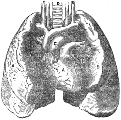 Pure carbonic acid gas is the heaviest of all the gases. That which is sent out of the lungs is not pure, because the whole of the air taken into the lungs at the previous inspiration has not been deprived of its oxygen, and the nitrogen is returned. Therefore the breath sent out of the lungs may be said to consist of air, with a large proportion of carbonic acid gas.