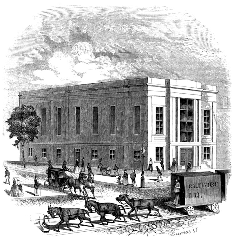 The “Hall of the Academy of Natural Sciences of Philadelphia” is forty-five feet front on Broad street, and one hundred and fifteen feet on George street, with an elevation of fifty feet. The style of architecture is plain and unpretending; and, as already intimated, the exterior remains unfinished for want of funds, all the resources of the Society being required to meet the current expenses incurred for preserving the objects in the museum, binding, books, warming and lighting, etc. etc.