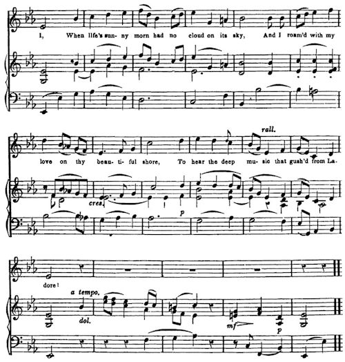 [The sad story of the Earl of Derwentwater, executed in 1716 for participation in the rebellion of the previous year, is well known. The beautiful lake from which he derives his title is surrounded by some of the grandest scenery in England. Few persons will need to be reminded of the beauty of the small cataract of Ladore. The memory of the misfortunes of Lord Derwentwater, and of the beauty of his disconsolate countess, is is still preserved in the traditions of the neighbourhood.]