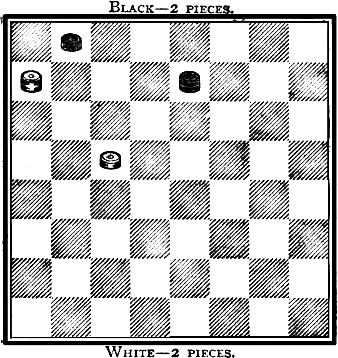 A Dancing Figure.—The illustration shows the back view of a toy easily constructed but capable of affording much amusement to the little ones. A is an ordinary lath glued to a cardboard figure of a man. The arms and legs too are of cardboard fixed loosely with short string knotted at each end. At the extremities of the arms and legs the strings B and C are tied and connected with the string D. Pull the string D and the figure will throw up his arms and legs wildly. Bears and other figures may be made upon the same principle. A string F may be put Pg 407 at E and then the lath is not necessary, for the performer can then hold string F in one hand and pull string D with the other.