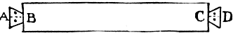 A Camera Obscura.—Obtain an oblong box, about two feet long, twelve inches wide, and eight high. In one end of this a tube must be fitted containing a lens. It must be possible to slide the tube backwards and forwards so as to obtain the focus. Inside the box should be a plain mirror reclining backwards from the tube at an angle of forty-five degrees. See A B in the Figure. At the top of the Pg 408 box at C is a square of frosted glass or a piece of tissue paper, upon which from beneath the picture will be thrown, and may be seen by raising the lid D. To use the camera place the tube with the lens in it opposite the object or scene, and having adjusted the focus, the image will be thrown upon the ground-glass or tissue paper.