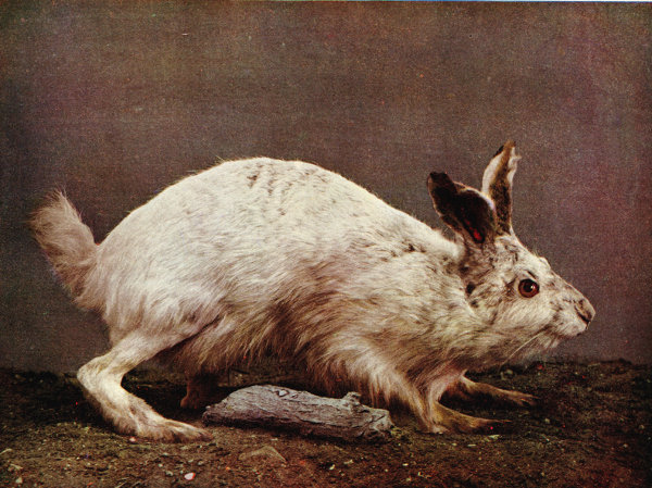 This northern species is found on the western prairies from British America to Colorado. It undergoes a winter change of coat, becoming nearly white, but the blanching is never complete and russet streaks or patches remain through the winter. The habits of this animal are those of hares in general, and all the species known as jack rabbits are famous for their great speed and for the astounding leaps they make in running. They are the most fleet and agile of American mammals. They are not much pursued for the reason that they are difficult to shoot, and their celerity of movement enables them to elude four-footed foes also. Pending the complete change from the summer brown to the snowy-white coat of winter, the animal presents a very singular mottled appearance.