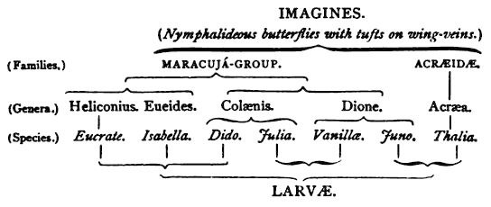 There is one other interpretation which might perhaps be attempted from the point of view of the old doctrine of species. It might be said that it is a special property of certain larval or imaginal markings to be variable whilst others are constant, and since the larval and imaginal markings of a species are generally quite distinct, it may easily happen that a butterfly possessing markings having408 the property of constancy may belong to a caterpillar having variable markings.