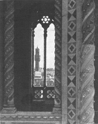 "In its first appeal to the stranger's eye," says Mr. Ruskin in writing of the Campanile, "there is something unpleasing; a mingling, it seems to him, of over severity with over minuteness. But let him give it time, as he should all other consummate art. I remember well how, when a boy, I used to despise that Campanile, and think it meanly smooth and finished. But I have since lived beside it many a day, and looked out upon it from my windows by sunlight and moonlight, and I shall not soon forget how profound and gloomy appeared to me the savageness of the Northern Gothic when I afterwards stood, for the first time, beneath the front of Salisbury. The contrast is indeed strange, if it could be quickly felt, between the rising of those gray walls out of their quiet swarded space, like dark and barren rocks out of a green lake, and that bright, smooth, sunny surface of glowing jasper, those spiral shafts and fairy traceries, so white, so faint, so crystalline, that their slight shapes are hardly traced in darkness on the pallor of the eastern sky, that serene height of mountain alabaster, colored like a morning cloud and chased like a sea shell. And this, I believe to be the model and mirror of perfect architecture...."