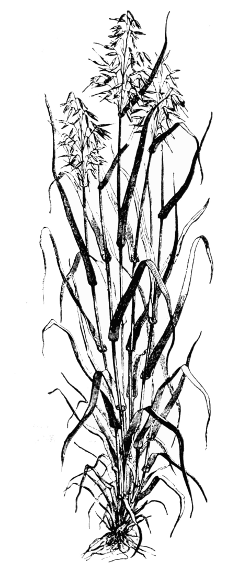 Fig. 1. A plant of Oat (Avena), an example of a typical grass, showing tufted habit and loose paniculate inflorescence (reduced). Figuier.