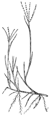Almost the only plants confounded with true grasses by the ordinary observer are the sedges and a few rushes. Apart from the very different floral structures, there are two or three easily discoverable marks for distinguishing all our grasses from other plants (Fig. 1). The first is their leaves are arranged in two rows, alternately, up the stems; and the second that their stems are circular or flattened in section, or if of some other shape they are never triangular and solid1 (Figs. 6 and 7). Moreover the leaves are always of some elongated shape, and without 5leaf-stalks2, but pass below into a sheath, which runs some way down the stem and is nearly always perceptibly split 6(Figs. 8-13). Further, the stems themselves are usually terete, and distinctly hollow except at the swollen nodes, and only branch low down at the surface of the ground or below it3.